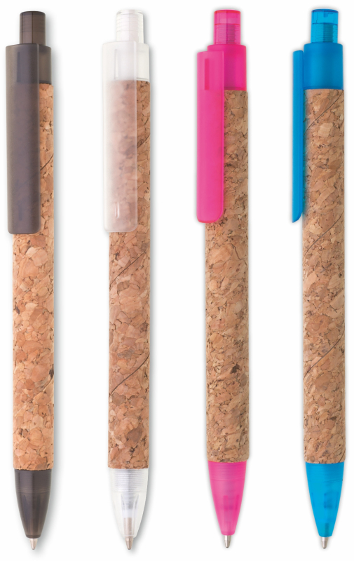 Propiska s korkovým povrchem KORK - tělo je potaženo korkem, špička, klip a cvakátko je z růžového plastu.(korek)