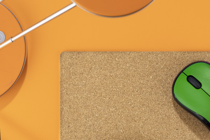Podložka pod myš PADDI z přírodního korku o rozměrech 22 x 18 cm.