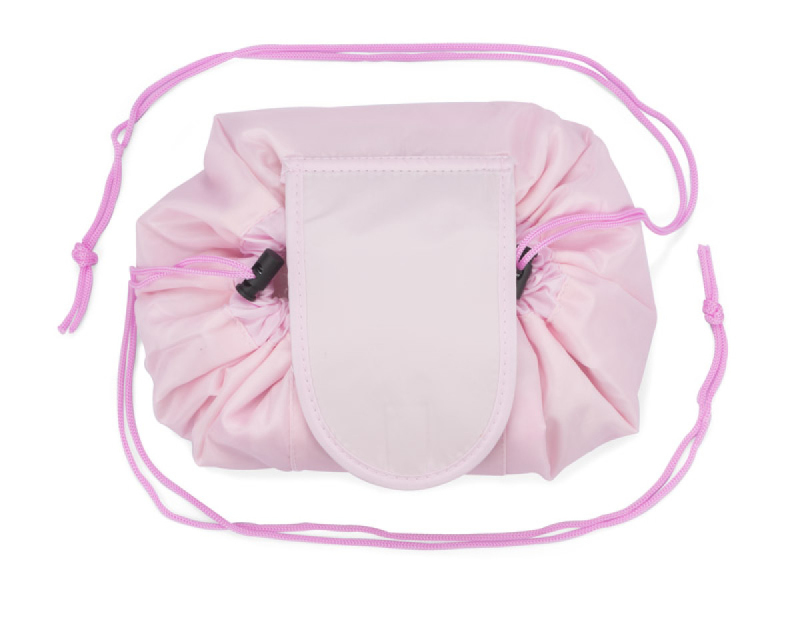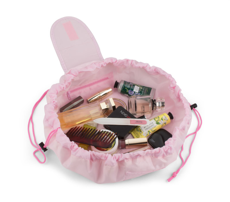 Nestandardní kosmetická taštička RUEDA, do které lze umístit jakoukoliv nejpotřebnější kosmetiku. Výjimečný způsob uzavíraní usnadňuje rychlý přístup k obsahu. Uvnitř kosmetické taštičky jsou dvě menší kapse uzavírané na zip, a jedna vnější neuzavíraná kapsa. Hlavní kapsa kosmetické taštičky se uzavírá stažením provázků a klapka na suchý zip. Kosmetická taštička je vyrobena z polyesteru 230D.