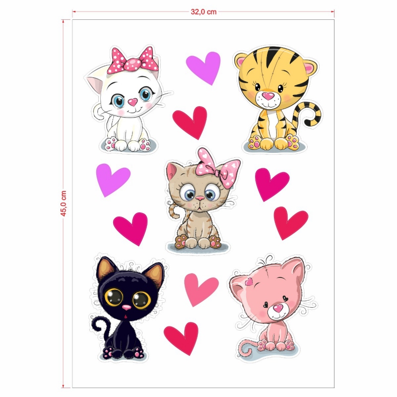 1x arch 32x45cm s pěti menšími koťaty a ozdobnými prvky