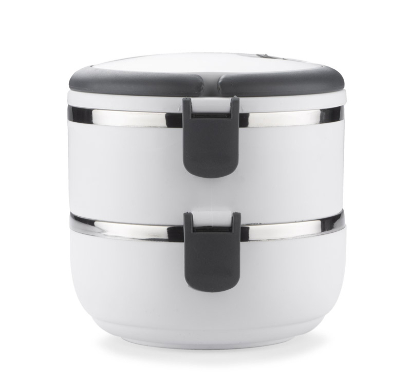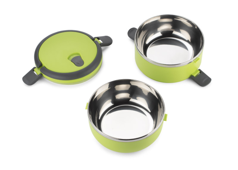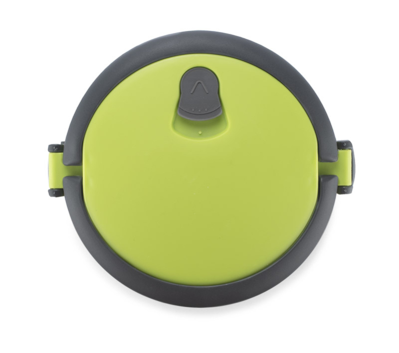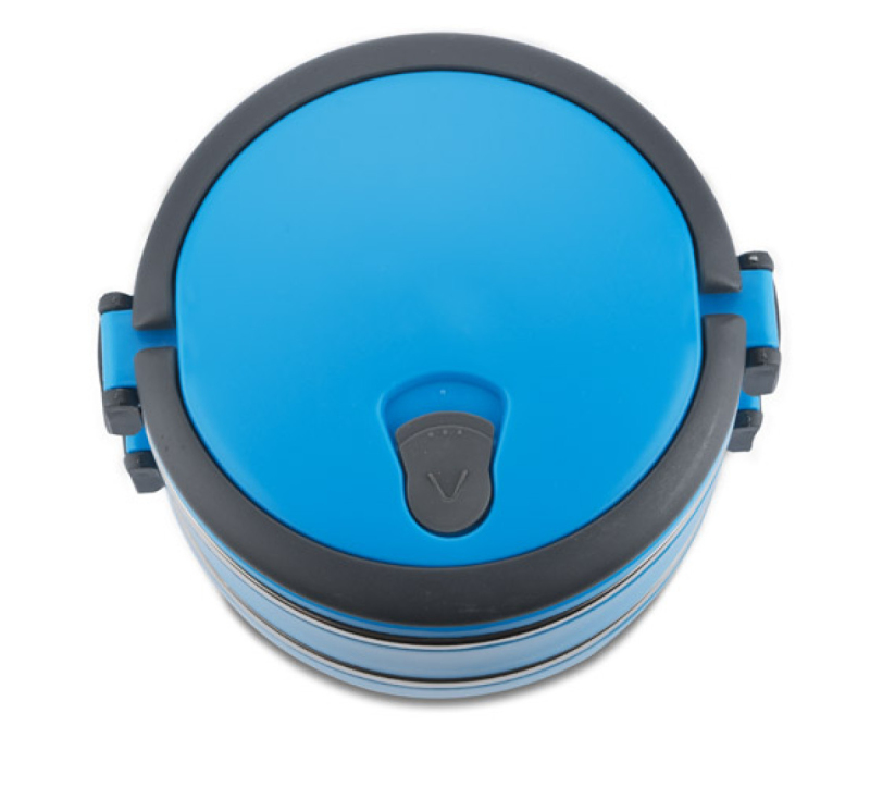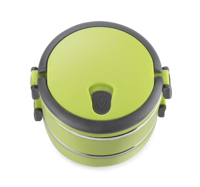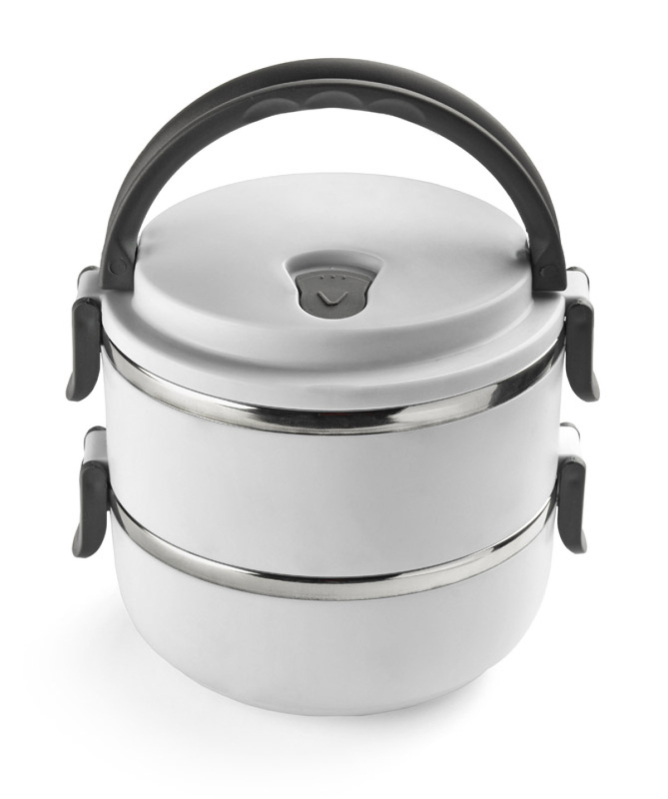 Kontejner na jídlo s nerezovým interiérem vám umožní přenášet dvouchodové obědy jednou rukou díky pohodlným sklopným madlům. Nádoba má dvě oddíly - horní s těsněním, které minimalizuje riziko vylití obsahu. Celková kapacita: 1400 ml.