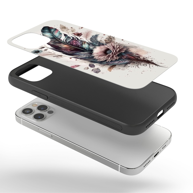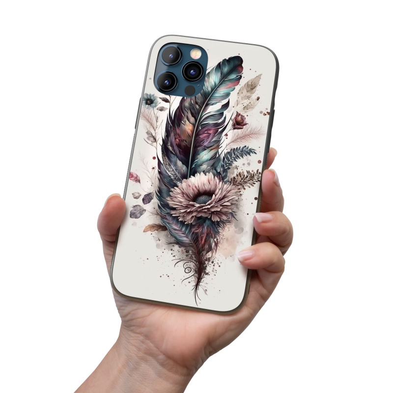 Kryt na mobil Koláž květin a peří