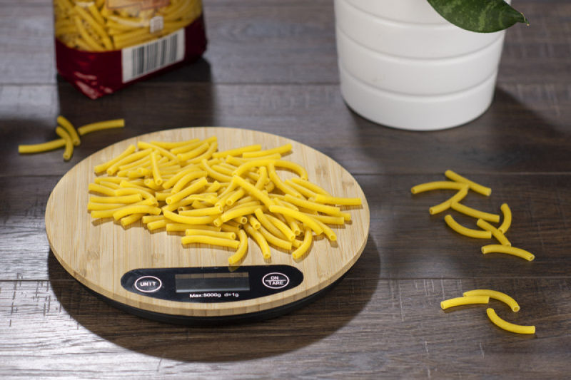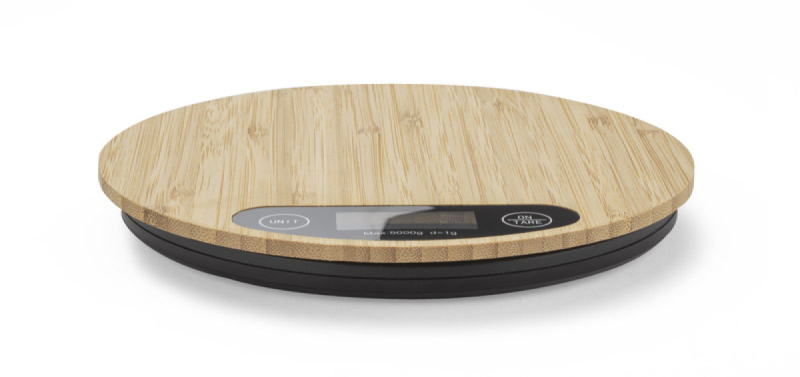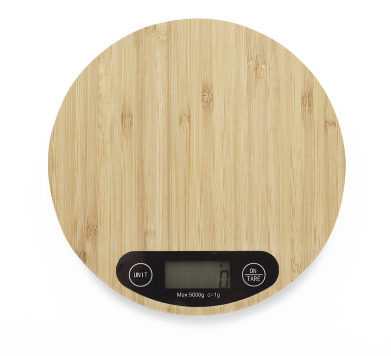 Elektronická kuchyňská váha CIRCA s povrchovou úpravou z přírodního bambusu. Technické informace: - maximální rozsah měření je 5 kg, - přesnost měření až 1 g, - jednotky měření: kg/lb a ml/oz - funkce tárování - vyžaduje 2x baterie AAA. Baterie nejsou součástí balení.