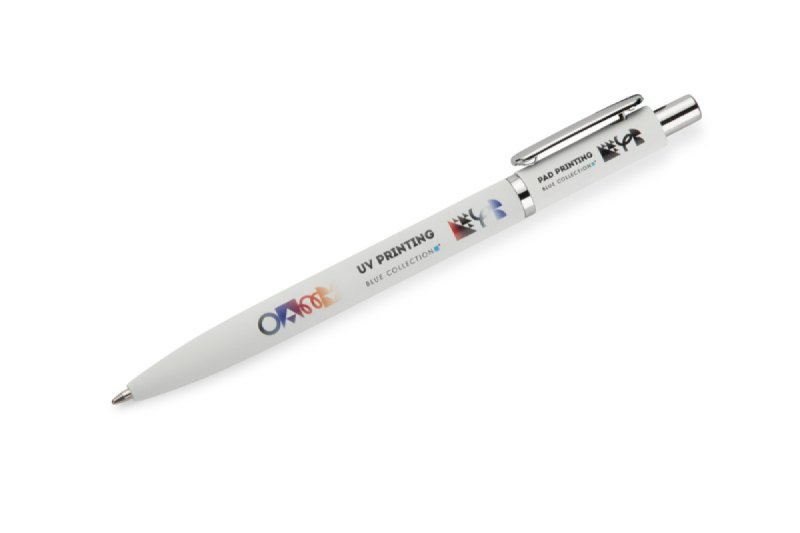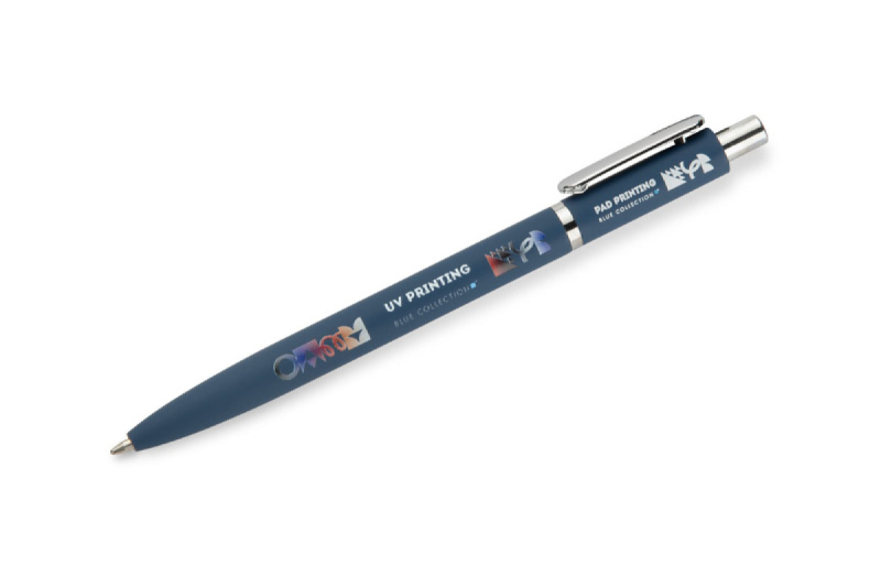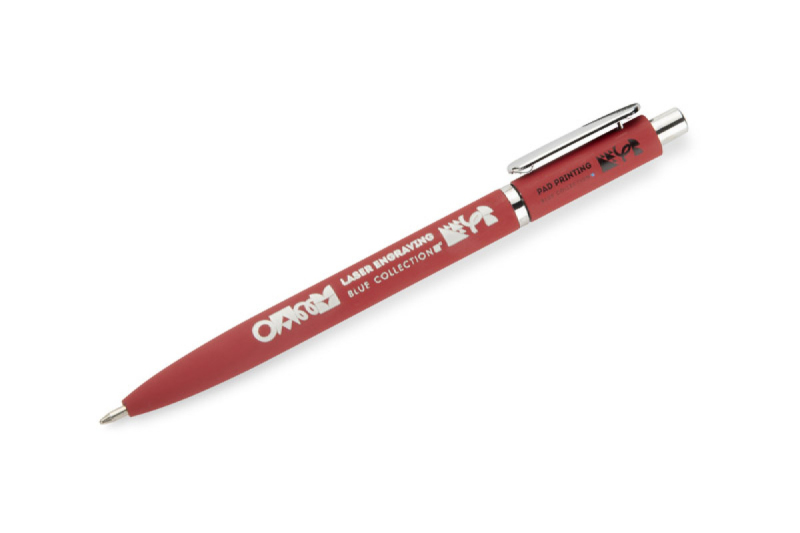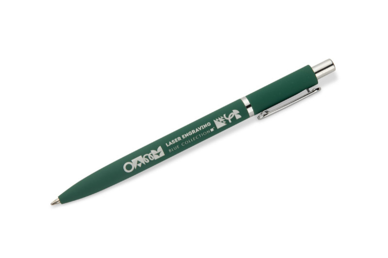 Kuličkové pero ELMO je elegantní model s moderním vzhledem, vyrobený z kovu s povrchovou úpravou soft touch. Pogumovaný povrch zajišťuje příjemný a bezpečný úchop a krátký zaoblený klip ve stříbrném kovovém provedení dodává peru jemný nádech. Pero je vybaveno automatickým zasouvacím mechanismem a náplní typu G2 s tloušťkou písma 0,7 mm, která zaručuje hladké a přesné psaní.