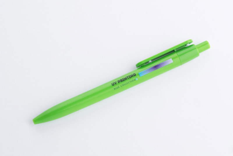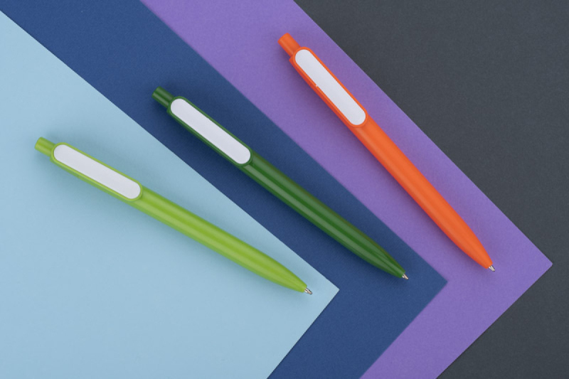 SPOTI je pero jednoduchého klasického tvaru vyrobené z plastu. Barevné tělo pěkně kontrastuje s bílým širokým klipem, na který lze umístit logo. Modrá náplň.