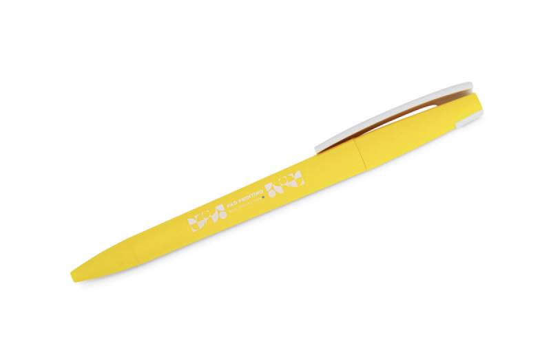 Kuličkové pero ZENO je vyrobeno z plastu s matnou povrchovou úpravou soft touch. Jeho moderní tvar a kontrastní bílý klip mu dodávají rozpoznatelný vzhled. Otočný mechanismus umožňuje pohodlné vysunutí hrotu X20 s tloušťkou písma 1,0 mm. Je lehké a praktické, hodí se pro každodenní použití i jako praktický reklamní prostředek s prostorem pro vaše logo.