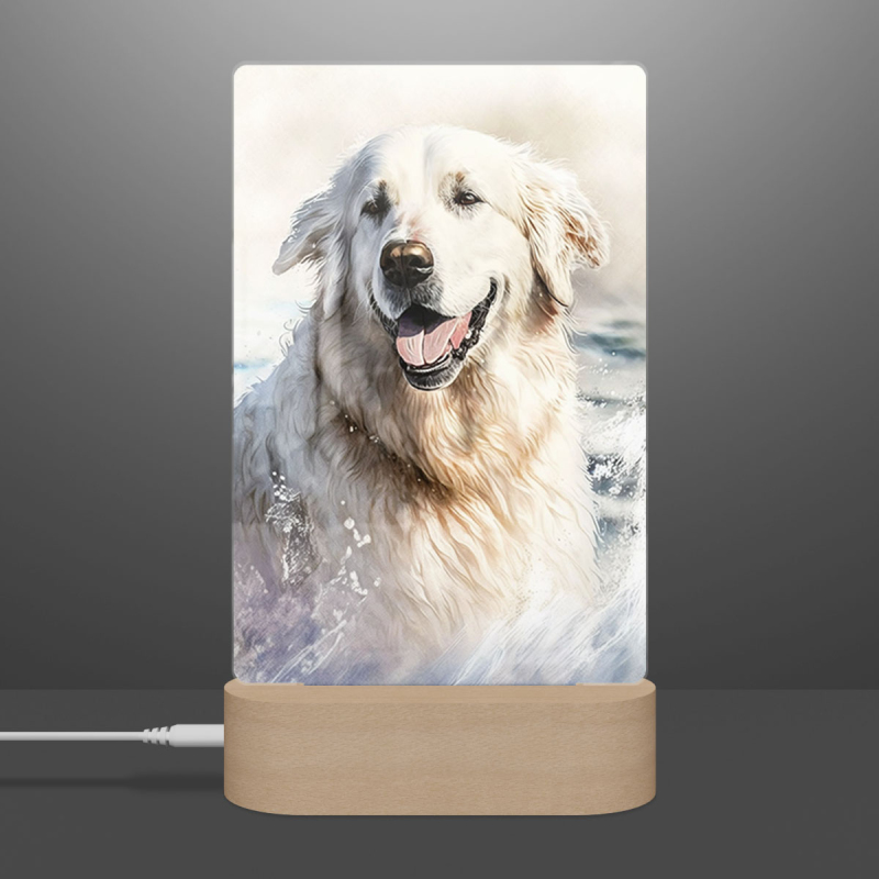 Součástí balení je akrylové sklo dle výběru, dřevěný RGB LED stojánek a napájecí USB kabel.