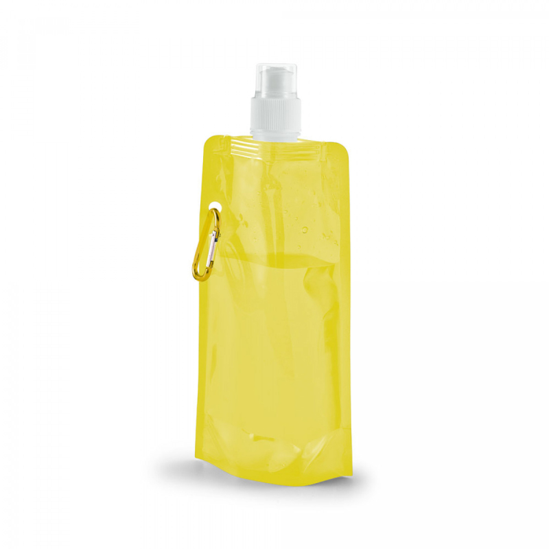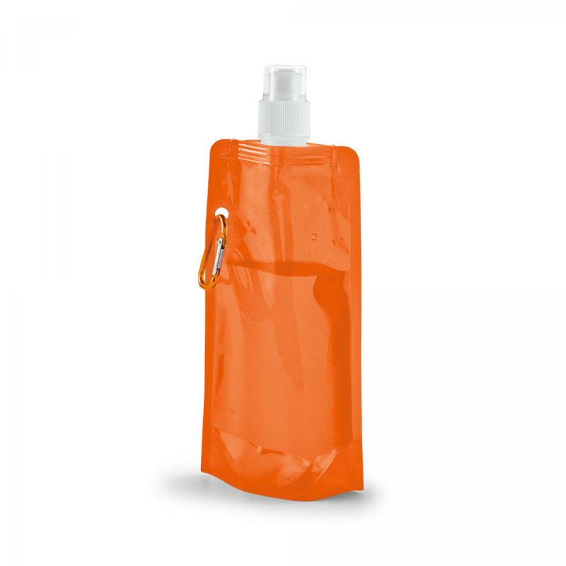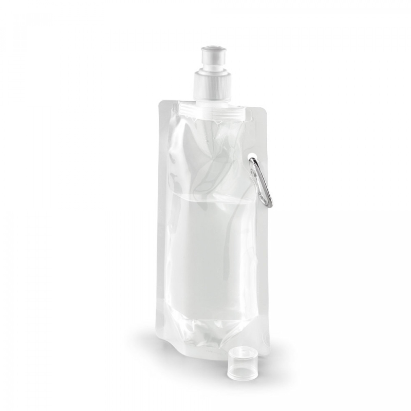 Skládací lahev z PE se zamačkávacím uzávěrem (systé,m push-pull). Obsahuje průhledný uzávěr a karabinu. Objem až 460 ml. 110 x 218 x 64 mm