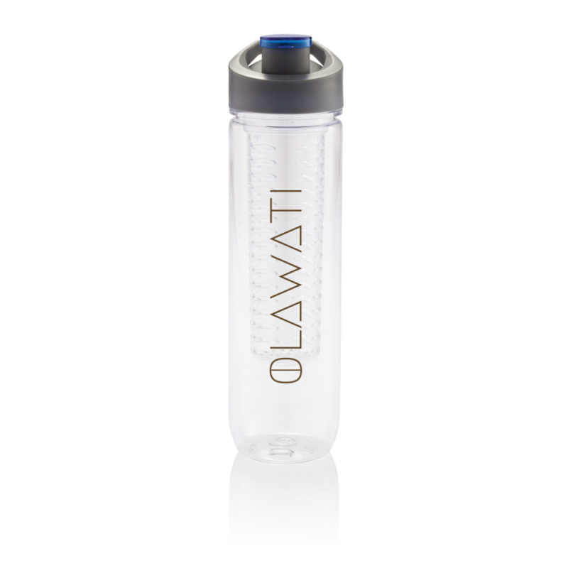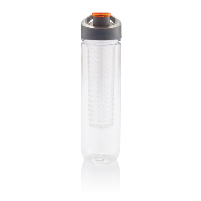 Tritanová lahev o objemu 800 ml s košíkem na luhování ovoce. Vložením čerstvého ovoce tak jednoduše dodejte vodě vitaminy a chuť, případně ji ochlaďte vložením kostek ledu.