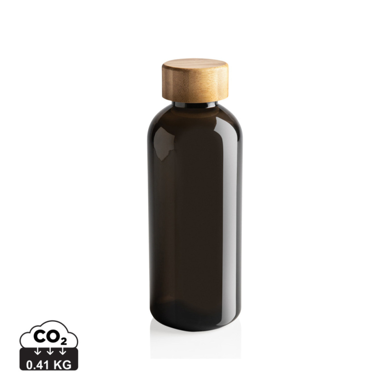 Nepropustná lahev na vodu se stylovým bambusovým uzávěrem. Jednostěnné tělo lahve je vyrobené z GRS recyklovaného PET plastu. GRS (global recycled standard) zaručuje kompletně certifikovaný dodavatelský řetězec, čímž lze garantovat skutečné obsažení recyklátu. Podíl použitého recyklovaného materiálu vzhledem k celkové váze produktu: 75 %. Bambusový uzávěr s FSC certifikací. Pouze pro studené nápoje a pro ruční mytí. Bez BPA. Objem: 660 ml. Baleno v FSC kraftové krabičce.
