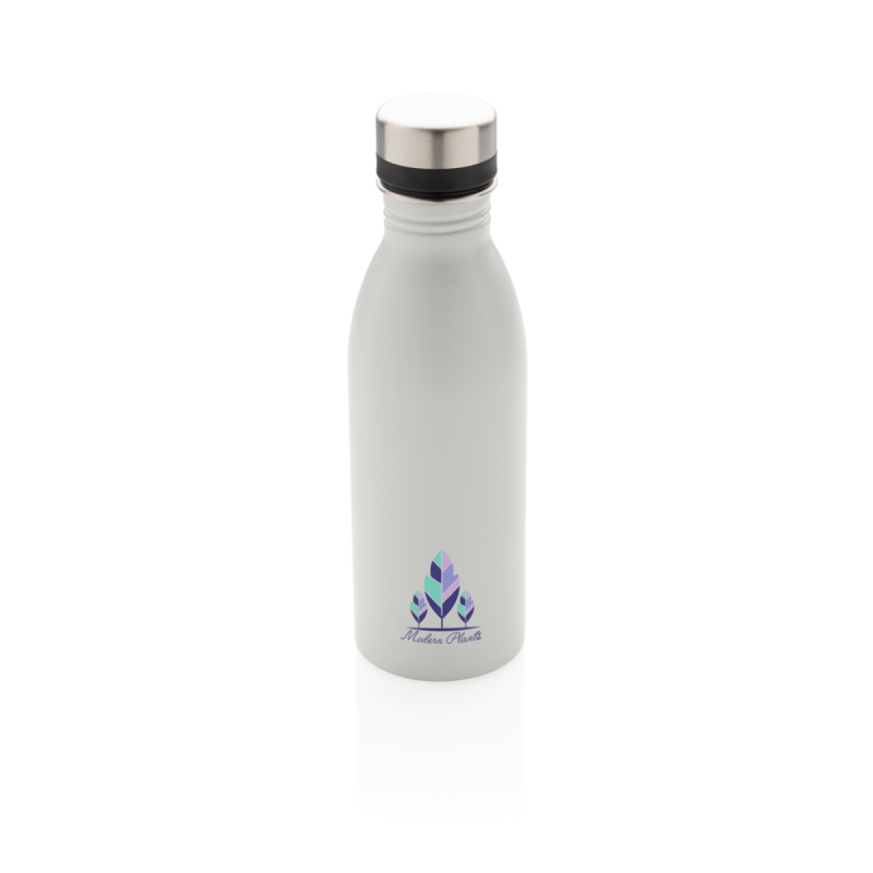 Lehká opětovně použitelná lahev na vodu vyrobená z odolné nerezavé oceli 18/8. Ideální velikost, nízká hmotnost a nepropustné víčko z ní dělají perfektní láhev pro každodenní udržování pitného režimu. Doporučeno pouze pro studené nápoje. Objem: 500ml. Více barevných provedení. Bílá v odstínu Pantone Cool Gray 1