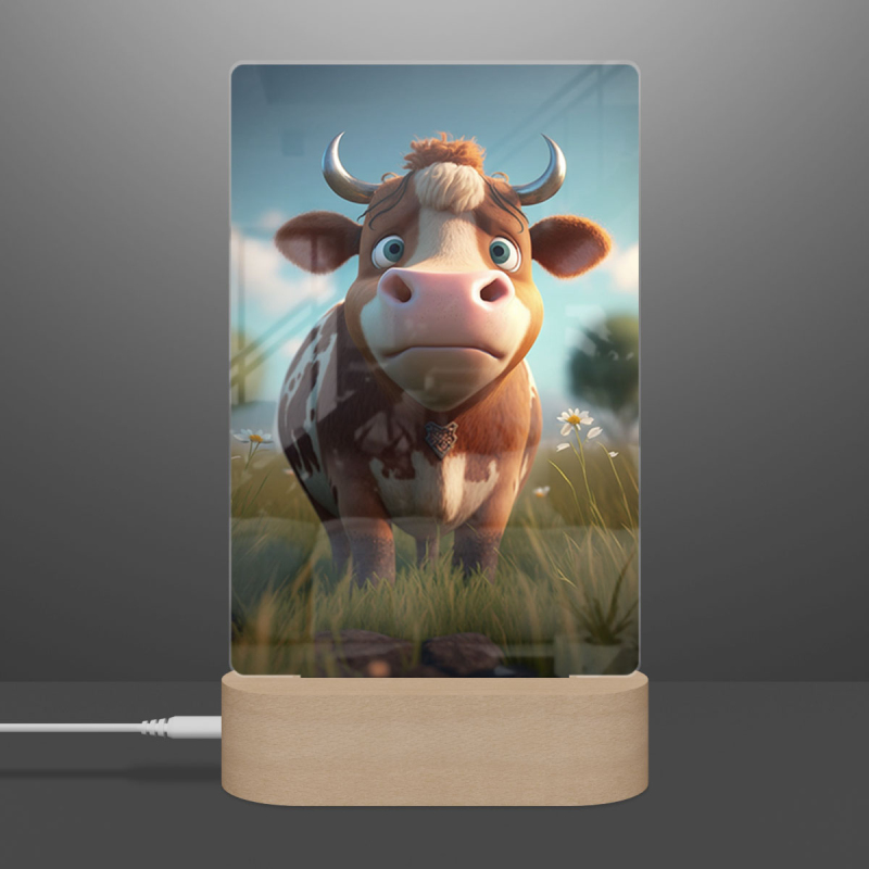 Součástí balení je akrylové sklo dle výběru, dřevěný RGB LED stojánek a napájecí USB kabel.