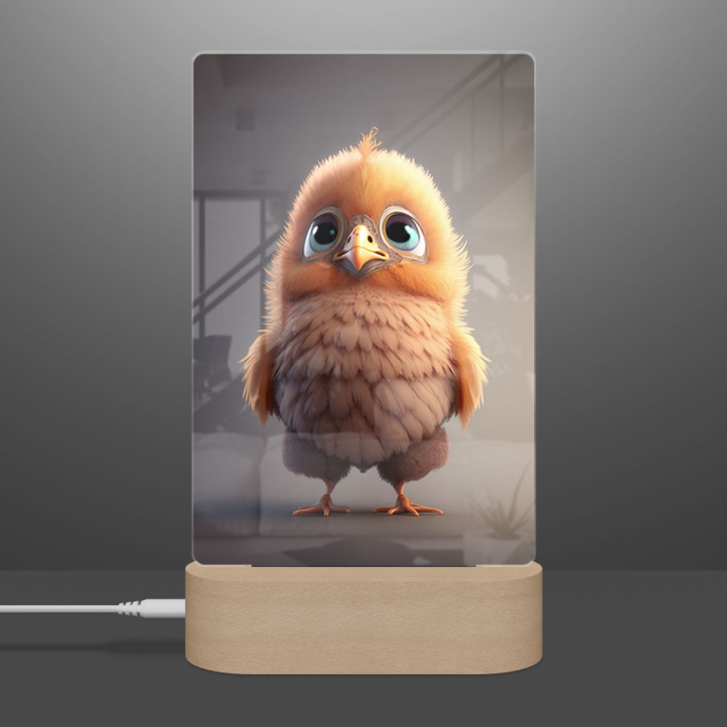 Součástí balení je akrylové sklo dle výběru, dřevěný RGB LED stojánek a napájecí USB kabel.