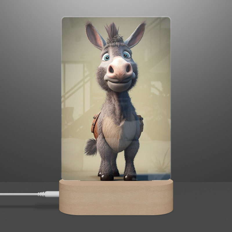 Součástí balení je akrylové sklo dle výběru, dřevěný RGB LED stojánek a napájecí USB kabel.