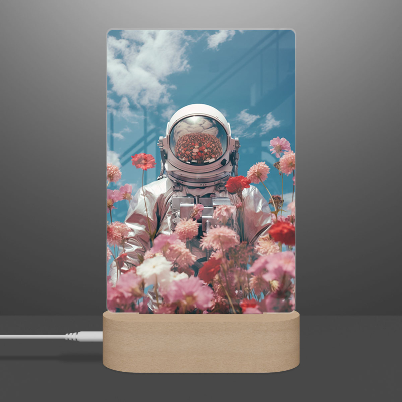 Lampa astronaut v květinovém vesmíru s helmou