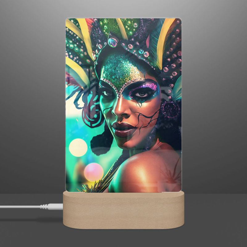 Součástí balení je akrylové sklo dle výběru, dřevěný RGB LED stojánek a napájecí USB kabel.