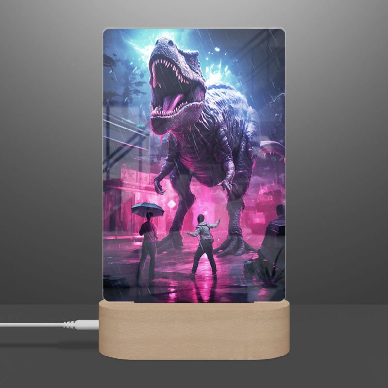 Lampa dinosaurus v dešti neonové barvy