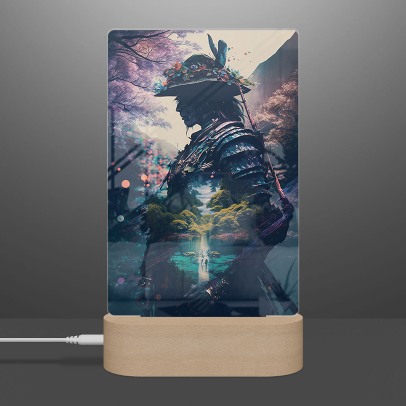 Součástí balení je akrylové sklo dle výběru, dřevěný RGB LED stojánek a napájecí USB kabel.