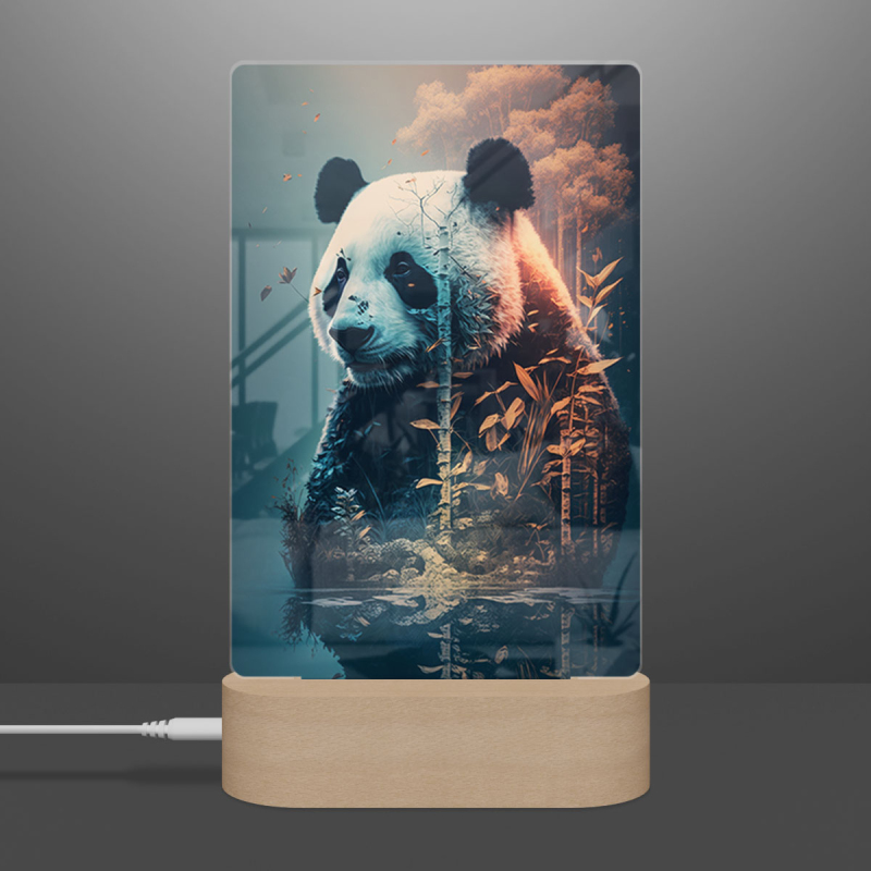Součástí balení je akrylové sklo dle výběru, dřevěný RGB LED stojánek a napájecí USB kabel.