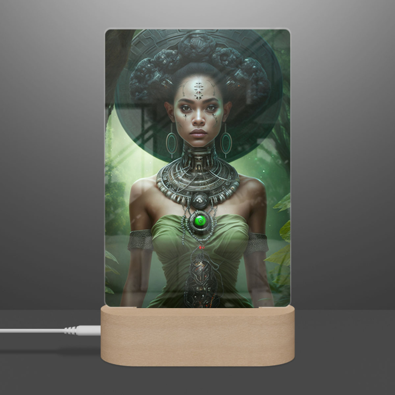 Součástí balení je akrylové sklo dle výběru, dřevěný RGB LED stojánek a napájecí USB kabel.