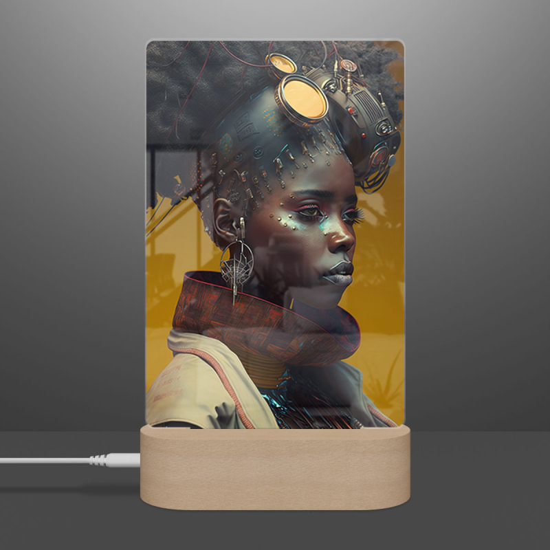 Součástí balení je akrylové sklo dle výběru, dřevěný RGB LED stojánek a napájecí USB kabel.