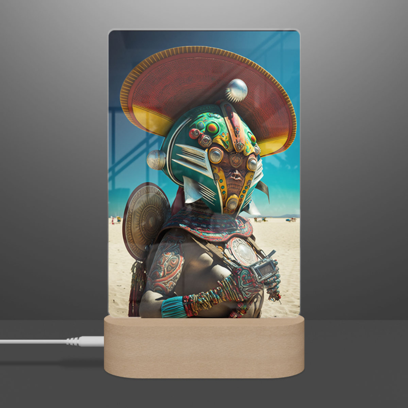 Součástí balení je akrylové sklo dle výběru, dřevěný RGB LED stojánek a napájecí USB kabel.