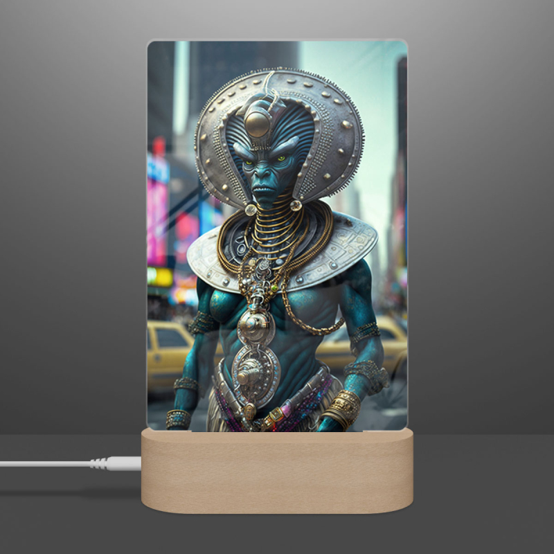 Součástí balení je akrylové sklo dle výběru, dřevěný RGB LED stojánek a napájecí USB kabel.