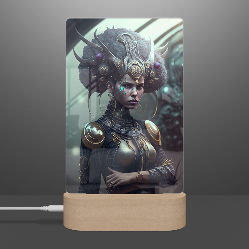 Součástí balení je akrylové sklo dle výběru, dřevěný RGB LED stojánek a napájecí USB kabel.
