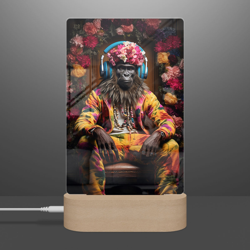 Lampa gorila s květinami kolem