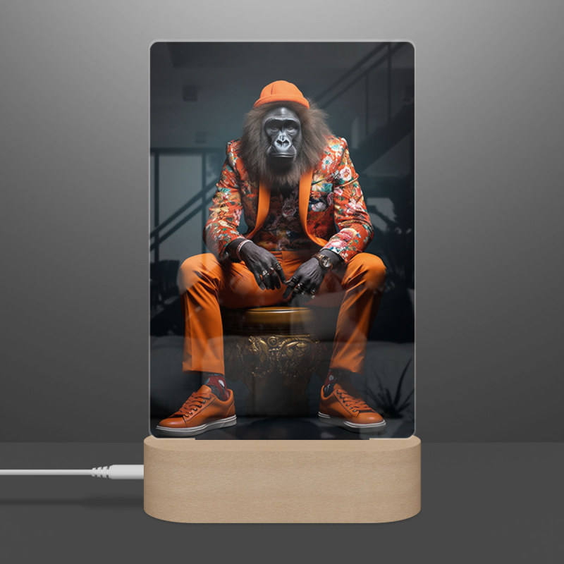 Součástí balení je akrylové sklo dle výběru, dřevěný RGB LED stojánek a napájecí USB kabel.