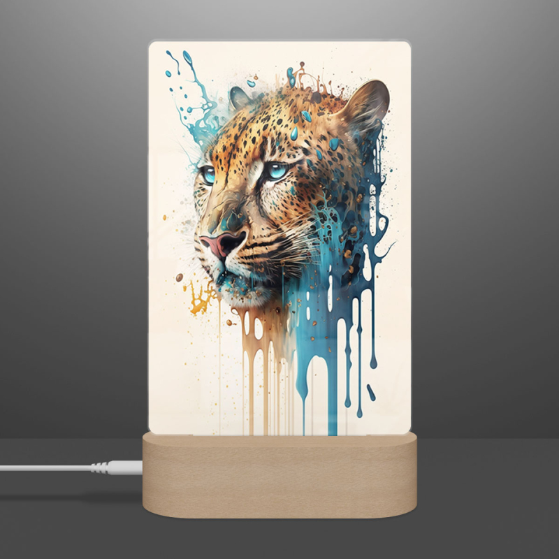 Součástí balení je akrylové sklo dle výběru, dřevěný RGB LED stojánek a napájecí USB kabel.