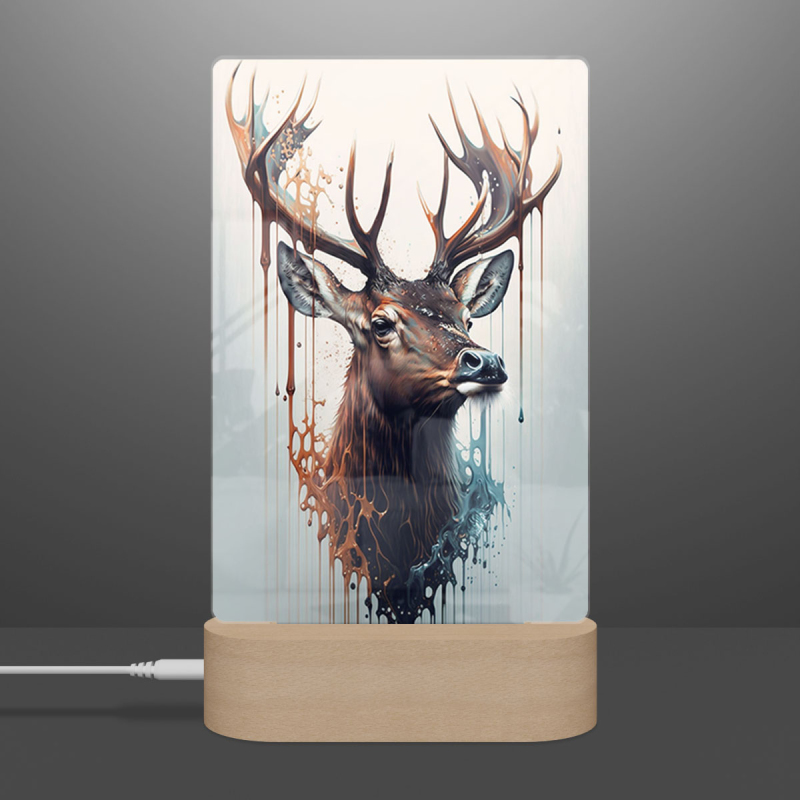 Součástí balení je akrylové sklo dle výběru, dřevěný RGB LED stojánek a napájecí USB kabel.