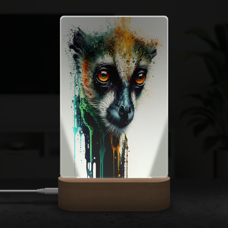 Součástí balení je akrylové sklo dle výběru, dřevěný RGB LED stojánek a napájecí USB kabel.