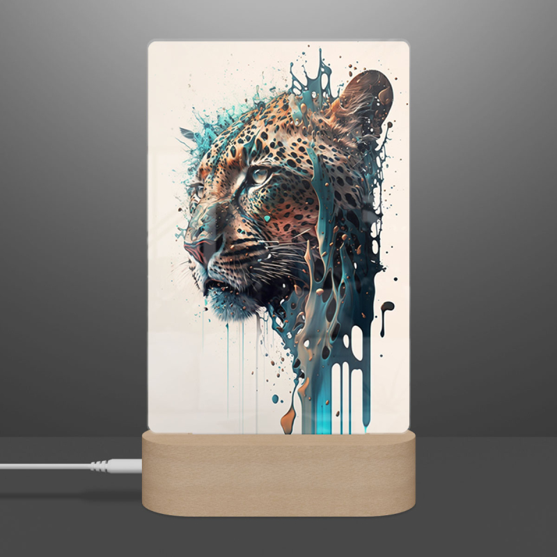 Součástí balení je akrylové sklo dle výběru, dřevěný RGB LED stojánek a napájecí USB kabel.