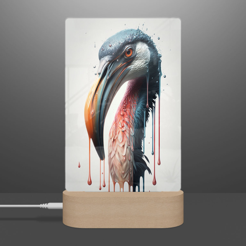 Součástí balení je akrylové sklo dle výběru, dřevěný RGB LED stojánek a napájecí USB kabel.