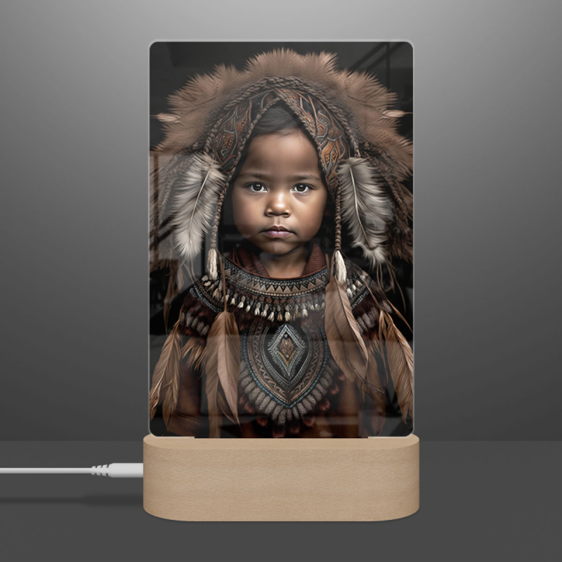 Součástí balení je akrylové sklo dle výběru, dřevěný RGB LED stojánek a napájecí USB kabel.
