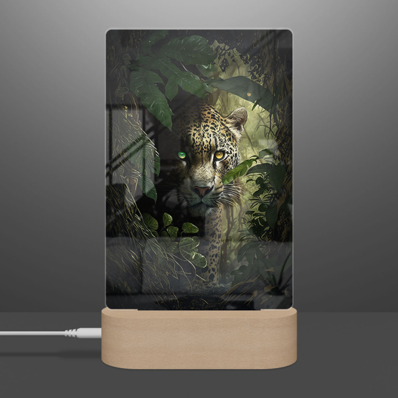 Součástí balení je akrylové sklo dle výběru, dřevěný RGB LED stojánek a napájecí USB kabel.