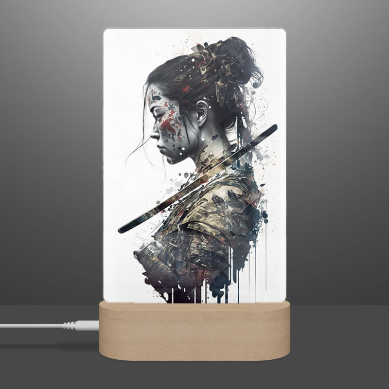 Součástí balení je akrylové sklo dle výběru, dřevěný RGB LED stojánek a napájecí USB kabel.