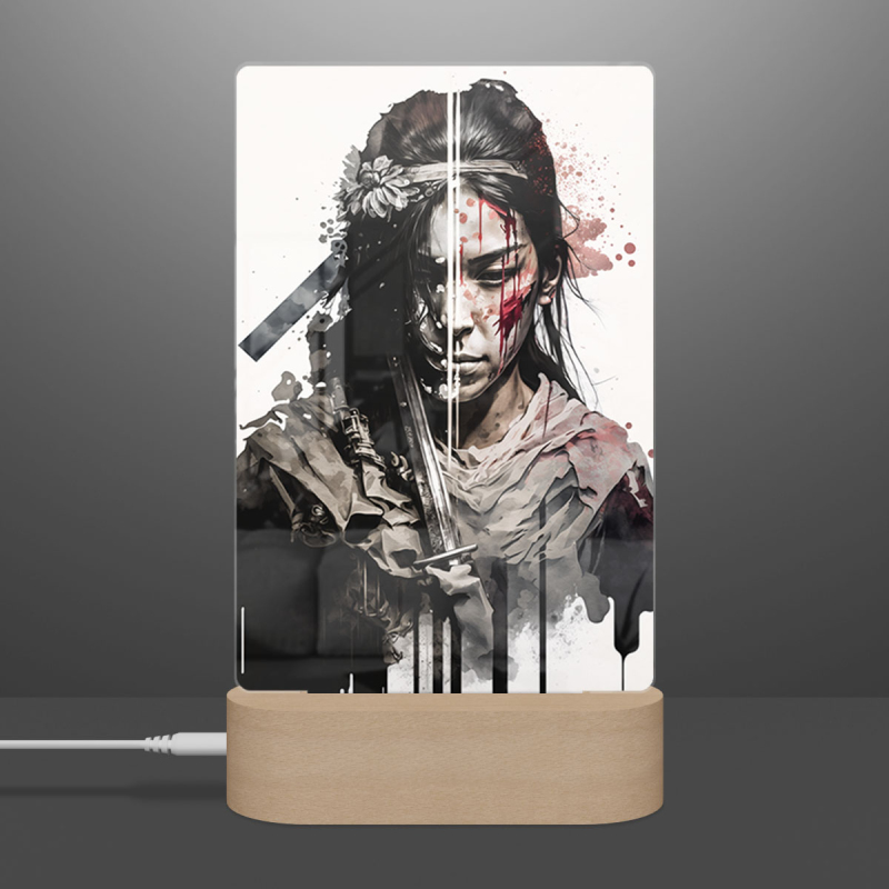 Součástí balení je akrylové sklo dle výběru, dřevěný RGB LED stojánek a napájecí USB kabel.