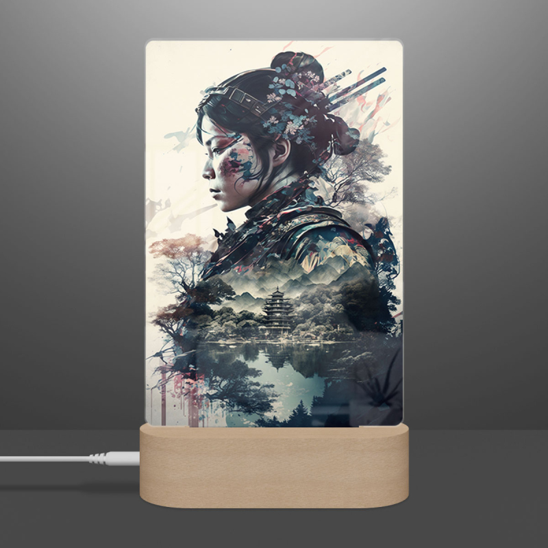 Součástí balení je akrylové sklo dle výběru, dřevěný RGB LED stojánek a napájecí USB kabel.