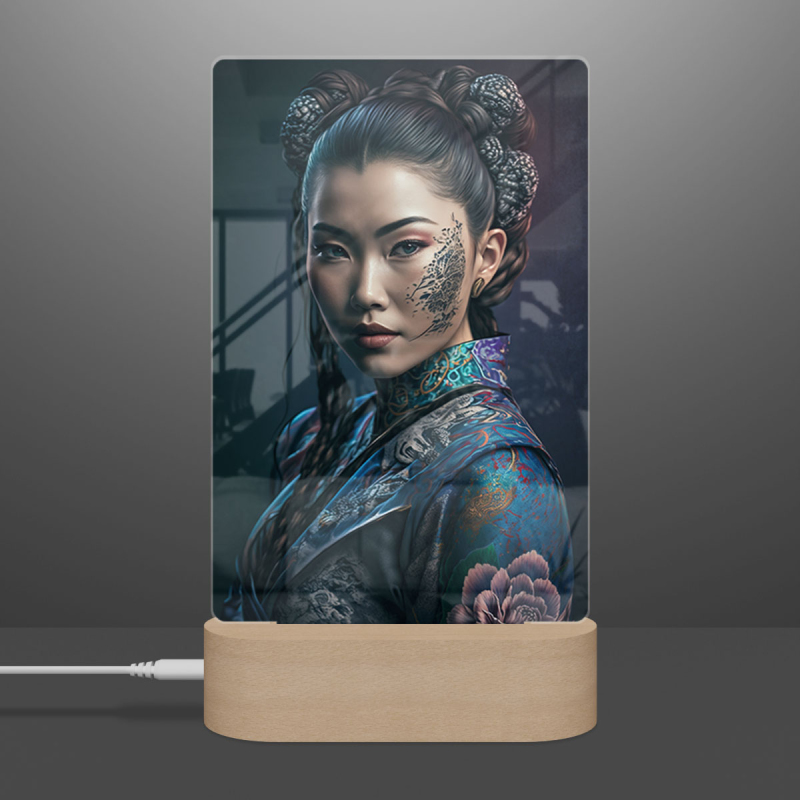 Součástí balení je akrylové sklo dle výběru, dřevěný RGB LED stojánek a napájecí USB kabel.