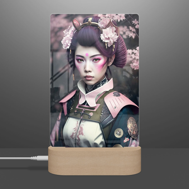 Součástí balení je akrylové sklo dle výběru, dřevěný RGB LED stojánek a napájecí USB kabel.