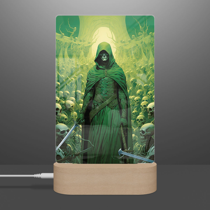 Součástí balení je akrylové sklo dle výběru, dřevěný RGB LED stojánek a napájecí USB kabel.