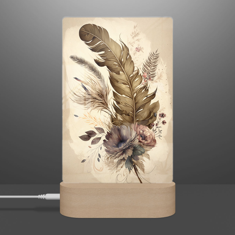 Součástí balení je akrylové sklo dle výběru, dřevěný RGB LED stojánek a napájecí USB kabel.