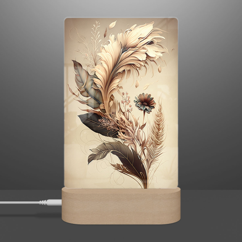 Součástí balení je akrylové sklo dle výběru, dřevěný RGB LED stojánek a napájecí USB kabel.