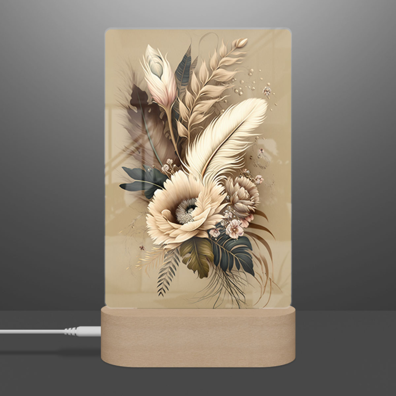 Součástí balení je akrylové sklo dle výběru, dřevěný RGB LED stojánek a napájecí USB kabel.
