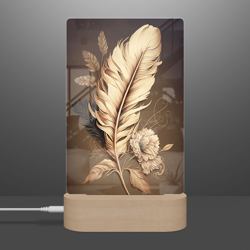 Součástí balení je akrylové sklo dle výběru, dřevěný RGB LED stojánek a napájecí USB kabel.