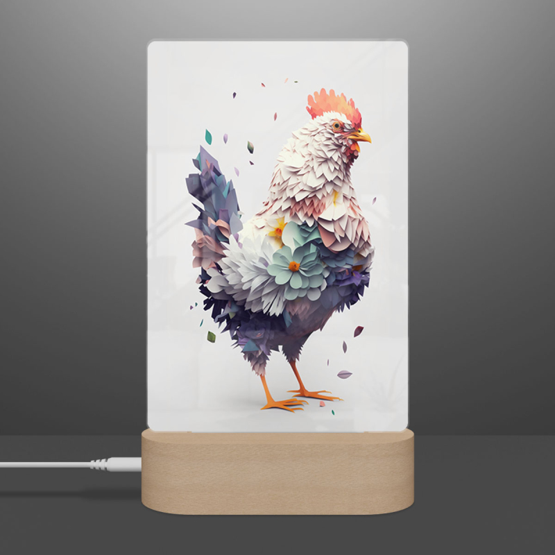 Součástí balení je akrylové sklo dle výběru, dřevěný RGB LED stojánek a napájecí USB kabel.