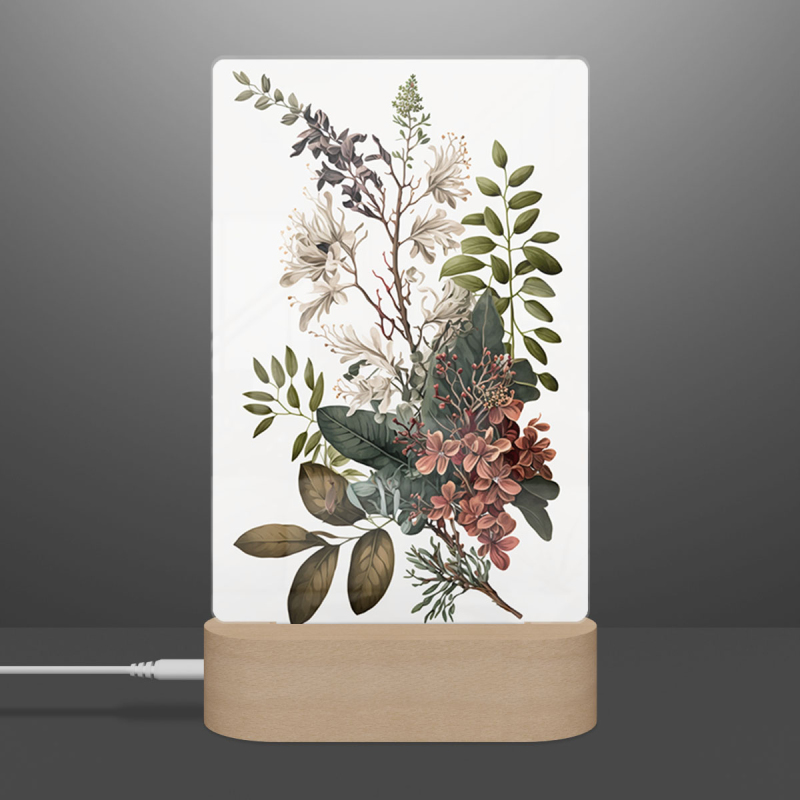 Součástí balení je akrylové sklo dle výběru, dřevěný RGB LED stojánek a napájecí USB kabel.