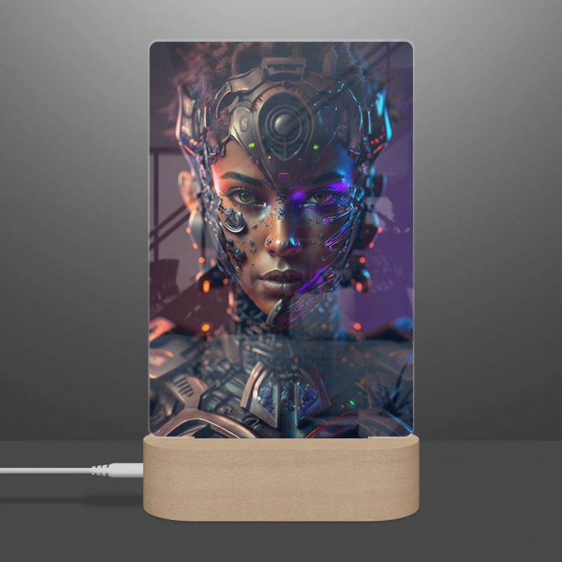 Součástí balení je akrylové sklo dle výběru, dřevěný RGB LED stojánek a napájecí USB kabel.